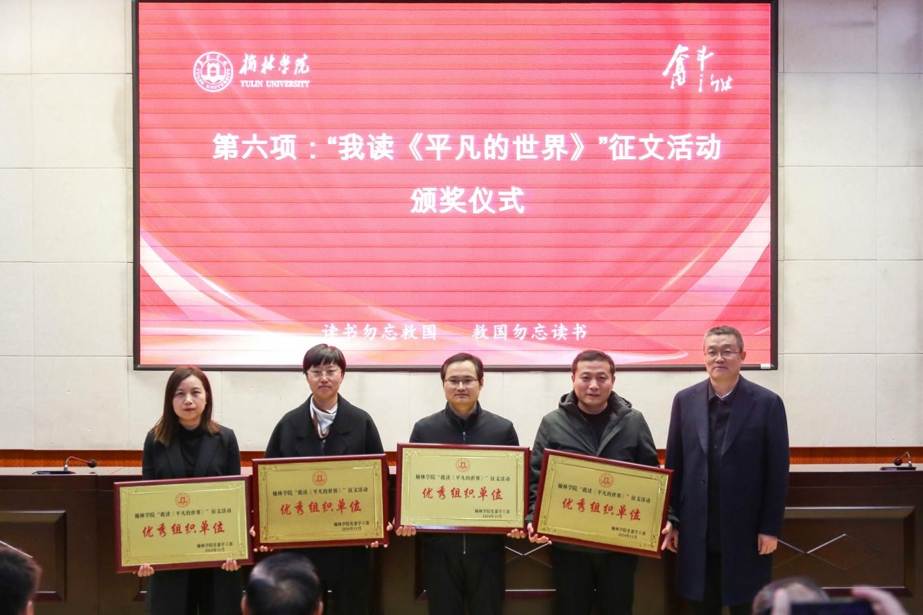 马亚军在总结讲话中向获奖的同学表示祝贺,并充分肯定了各学院在开展“乐读”引领校园阅读风尚方面取得的成效。他指出,当前学校正在全面深入开展乐讲、乐读、乐跑、乐唱、乐劳“五乐育人”工程,在“乐读”方面,学校每年为每位新生赠送《平凡的世界》,举办了“走进公寓问需求,畅谈平凡话奋斗”、“我读《平凡的世界》”征文、读书分享会、名师导读系列讲堂等一系列形式丰富多彩、学生喜闻乐见的读书活动,着力培养学生读书习惯,激发学生读书热情,提升学生综合素养。就如何进一步开展“乐读”活动,他提出三点希望:一是希望同学们学习传承路遥精神。“路遥”是榆林的一张知名的文化名片,“路遥精神”是陕北的一个精神符号,学习好、传承好、弘扬好“路遥精神”就是对路遥最好的怀念。要通过重温路遥的奋斗足迹,阅读路遥的经典著作,感悟奋斗人生,弘扬路遥精神,汲取奋进力量,争做新时代“最美奋斗者”。二是希望同学们积极参加“乐读”活动。青春正是读书时,最是书香能致远。同学们要向今天受表彰的同学学习,珍惜光阴、不负韶华,积极参加各类“乐读”活动,走进名著,阅读经典,从书本里学真知、悟真谛,在实践中长才干、壮筋骨,练就担当作为的硬脊梁、铁肩膀、真本事,奋力书写为中国式现代化挺膺担当的青春篇章。三是希望各学院打造“乐读”特色品牌。要优化阅读阵地、丰富阅读载体,凝练特色书单、选树优秀典型,总结特色亮点、展示阅读成果,引导学生走近经典、深入经典,通过阅读滋润精神世界,汲取奋进力量和文化智慧,久久为功、驰而不息,纵深推进“乐读”工作,着力打造书香校园,提高人才培养质量,助推学校内涵式高质量发展。