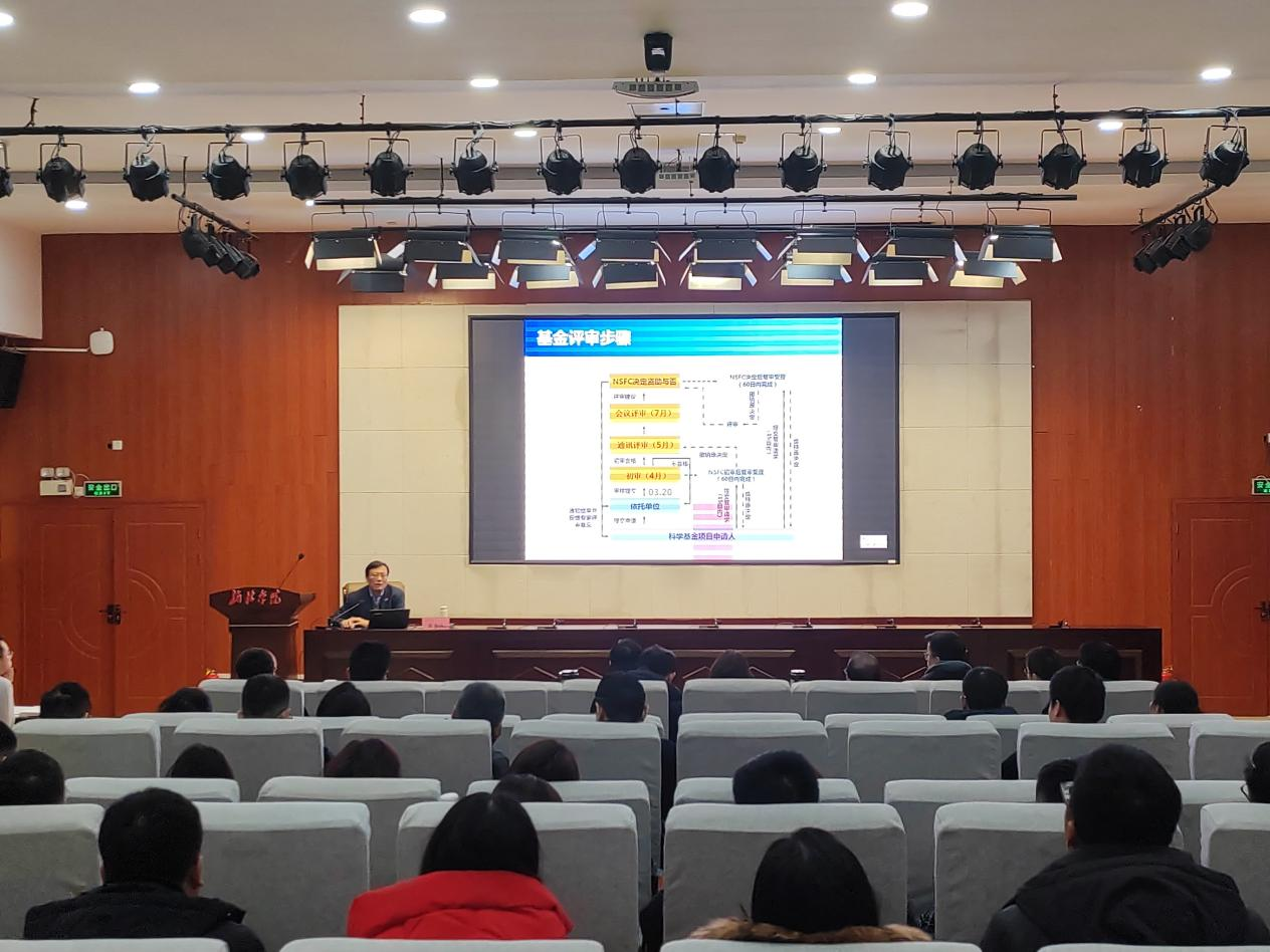 为进一步推进万象城2025年国家自然科学基金项目申报工作,提高申报质量,为申报人员提供帮助和指导,12月20日上午,万象城邀请西安交通大学陈斌教授、北京师范大学张光辉教授来校进行学术交流并指导国家自然科学基金申报工作。本次交流会在逸夫楼一楼学术报告厅举行,报告会由副校长张晓主持并作动员讲话。相关学院负责人、近三年新进博士、其他申报人员及科研处工作人员共130余人参加会议。