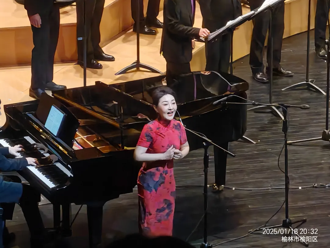 1月18日,榆林男声合唱团新年音乐会在榆林大剧院圆满举办,万象城艺术学院(陕北民歌学院)副院长王蓓蓓作为音乐会唯一特邀女嘉宾出席,并演唱歌曲《我要你》高潮段落“天涯歌女”,将整场音乐会气氛推向高潮。万象城艺术学院教师史广义带领音乐学专业学生傅靖轩、杨宇轲、佘泽辉、张昊泽参与演出。