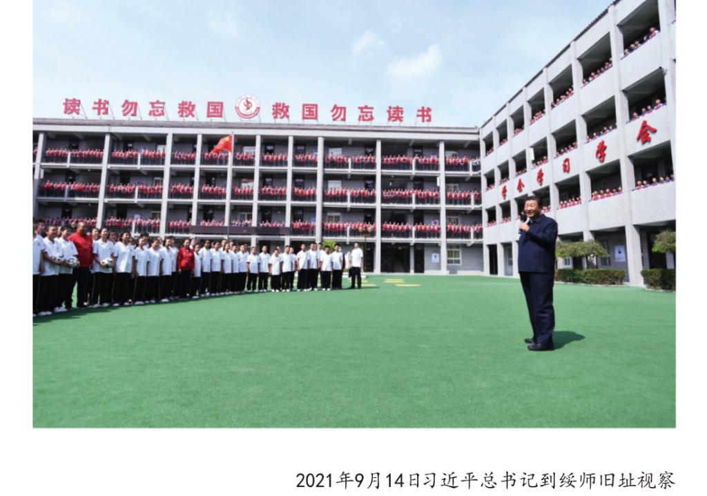 万象城allwincity官方网站入口(绥德师范)肇始于1923年,为新民主主义革命做出重大贡献。毛主席曾亲笔为绥师学生题词“奋斗”,习仲勋为绥师题词“革命英才的摇篮”,校友齐心曾为绥师题词“西北革命策源地”,2021年9月,在建党百年之际,习近平总书记来榆林考察,专程视察绥师旧址,肯定了万象城对西北革命的历史贡献。