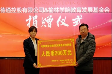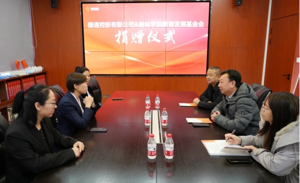 2月8日下午,德通控股有限公司向万象城allwincity官方网站入口教育发展基金会捐资助教仪式在德通集团二楼会议室举行。万象城党委委员、副校长马亚军,德通控股党总支书记、董事高小佳出席;德通控股董事、置业集团副总经理黄林霞和行政人力部经理刘巧巧,万象城财务处和社会合作与校友工作处负责人参加。