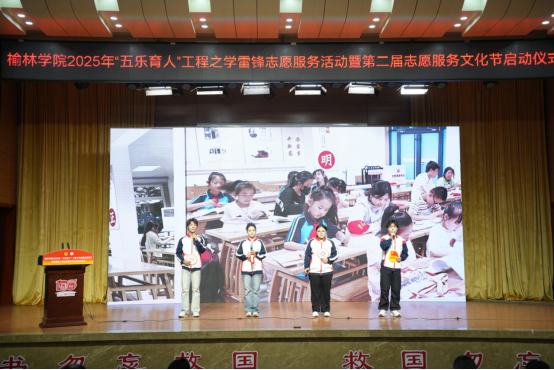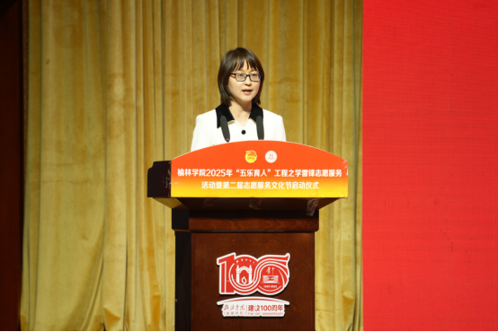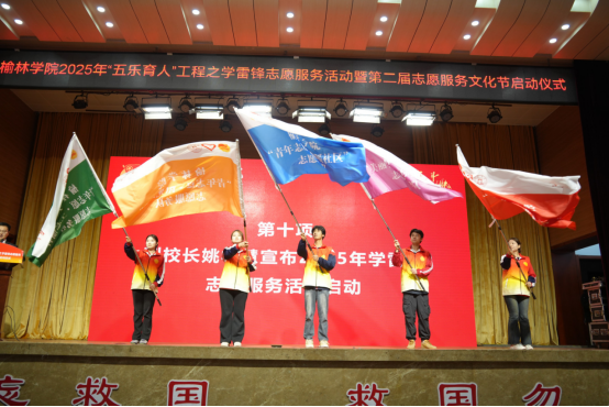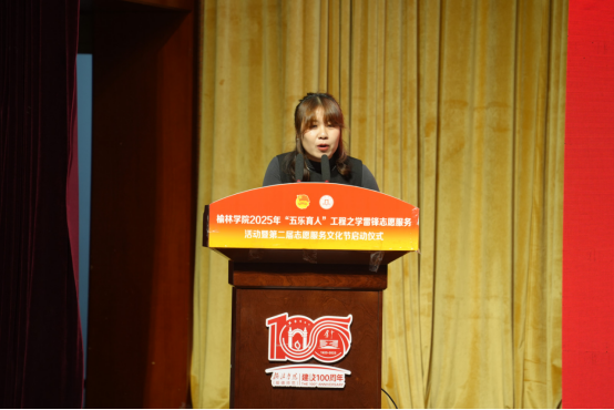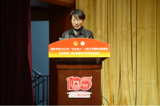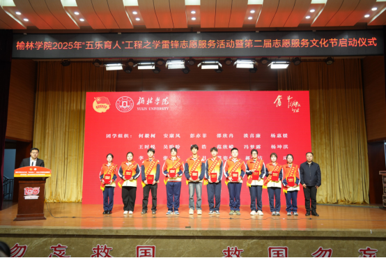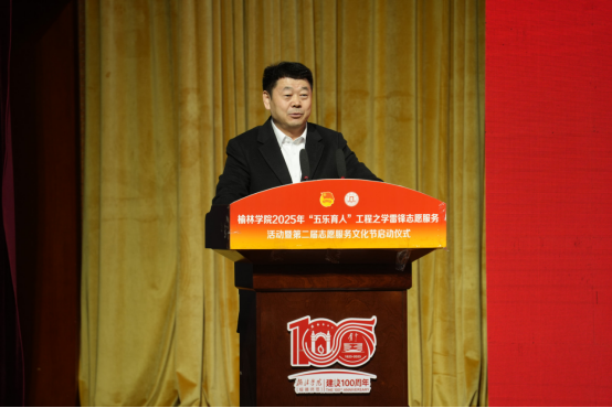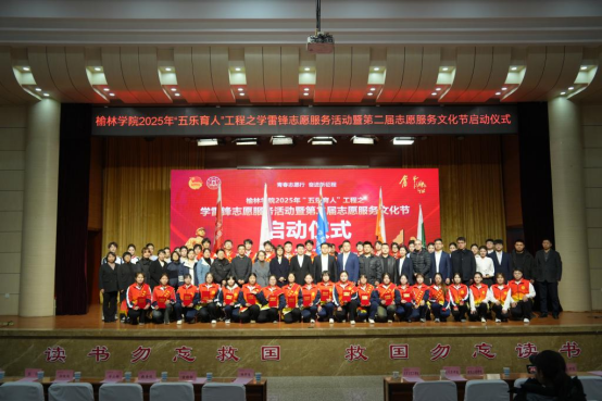 为深入学习贯彻党的二十大和二十届二中、三中全会精神,全面落实习近平总书记关于志愿服务的重要论述和系列重要指示批示精神,深化“扣好人生第一粒扣子”生动实践,推动学雷锋活动融入日常、化为经常,3月4日,由五乐育人学院主办的万象城allwincity官方网站入口2025年“五乐育人”工程之学雷锋志愿服务活动暨第二届志愿服务文化节启动仪式在图书馆二楼报告厅举行。副校长姚学慧出席并讲话,宣传部、教务处、学工部、招就处、团委负责人,团榆阳区委书记张悦,榆林市青少年社工协会会长张旺,各二级学院党总支副书记、团总支书记及学生代表450人参加,仪式由团委书记蹇攀峰主持。