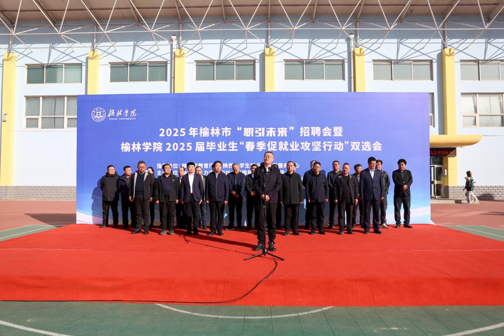 榆林市人力资源和社会保障局党组成员、副局长李福峰,榆林市公共就业和人才服务中心主任贺飞,榆林市失业保险经办中心副主任、市人社局就业促进科科长白亮,榆阳区公共就业创业服务中心主任王永福,高新区管委会人力资源社会服务中心主任白犬,杭锦经济开发区人才和科技局副局长高喜,优秀校友企业代表天丰昌医教科技有限公司副总经理雷磊以及各县(市、区)公共就业和人才服务机构负责人,万象城allwincity官方网站入口研究生院党总支书记,各二级学院党总支书记、副书记,毕业班辅导员(班主任)及全体2025届毕业生参加启动仪式。