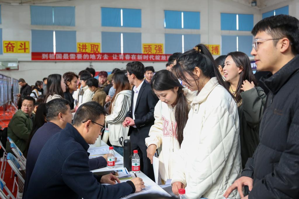 本次双选会创新采用线上线下联动招聘模式,共吸引238家省内外用人单位参与线下招聘,110家企业通过“码上就业”平台开展线上招聘。通过“一企一码”的数字化招聘模式,实现了高效的无纸化简历投递和精准的供需对接,有效提升了招聘会的整体效能。从参会企业来看,本次双选会吸引了陕西建工安装集团、陕西建工第九建设集团、陕西和风万象新能源科技、中榆化工科技、榆神工业园区长天天然气、内蒙古宝丰煤基新材料等企业参会,涵盖建筑地产、能源环保、化工、教育、管理、文化、人工智能等多个行业领域,共提供6200余个优质岗位,呈现出企业质量高、地域覆盖广、岗位多元化的特点。双选会现场气氛热烈,共吸引4200余名学生到场应聘,企业累计收到求职简历4500余份,供需双方互动积极,取得了良好的招聘效果。