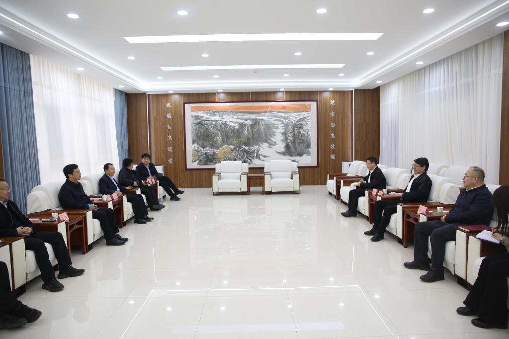张新柱代表学校对陈新兵、王云博一行来校交流座谈表示热烈欢迎,并就学校近年来在红色资源挖掘研究、制度机制改革创新、教育教学质量提升、科研经费逐年递增、高层次人才引留培育、立德树人成效等方面取得的显著成绩做了交流介绍。希望双方以科研项目申报为纽带,以研究院建设为桥梁,以人才培养为目的,在红色基因与红色历史研究、能源化工与生态修复、师资互助与干部培训、免费师范生教育与培养、高层次人才引进与博士点建设、科研成果凝练与学科建设、开放办学与服务社会等方面,夯实合作基础,加强合作力度,拓宽合作领域,发挥校友力量,深化社会合作,大手拉小手,绵绵用力,久久为功,共同为推动教育强国建设贡献力量。