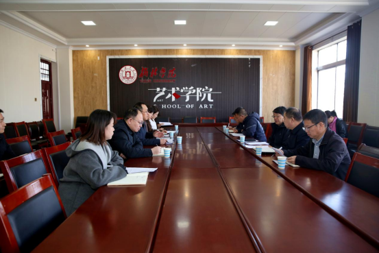 4月1日,党委书记张新柱深入外国语学院与艺术学院调研座谈,党政办、人事处、教务处、科研处等部门负责人参加。