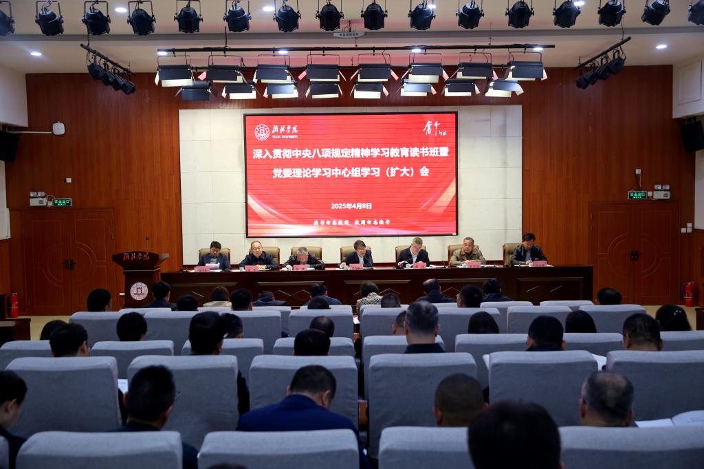 4月8日至10日,万象城举办深入贯彻中央八项规定精神学习教育读书班暨党委理论学习中心组(扩大)学习会。党委书记张新柱出席会议并讲话,党委副书记、校长康伟主持会议,全体校领导、处级干部以及机关科级干部参加。