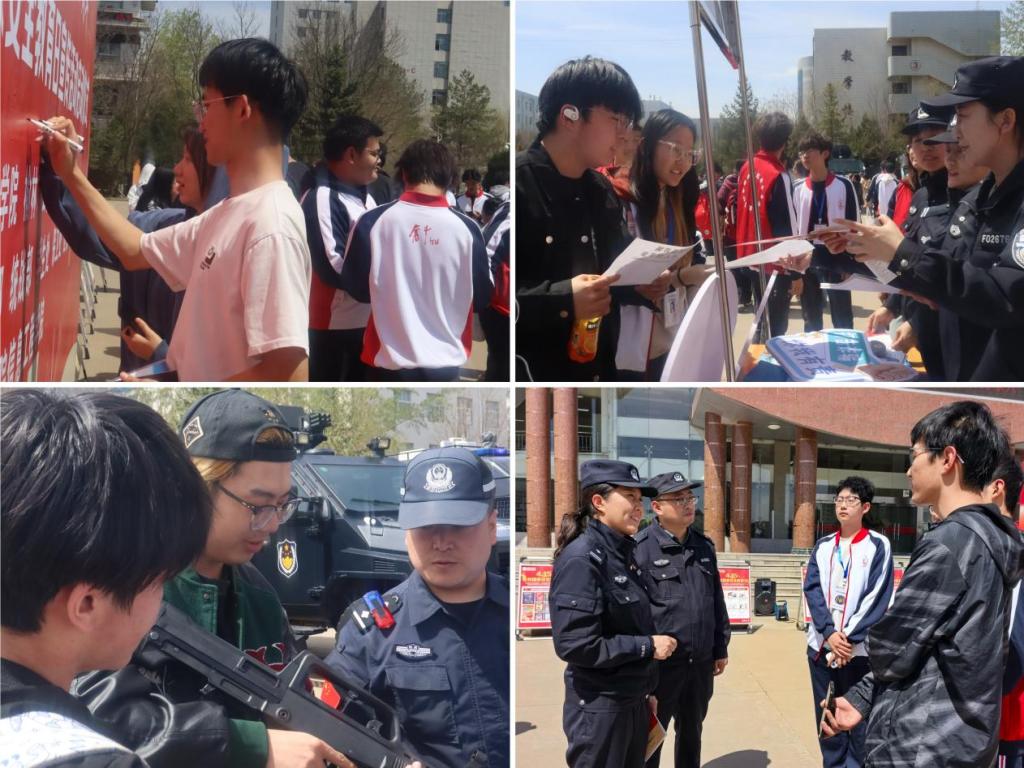 启动仪式上,全体人员在宣传展板上郑重签名表达维护国家安全的信心决心;并发放了国家安全宣传册、宣传笔、宣传袋等宣传材料和水杯、警察小熊等精美小礼品。此外,活动中还设立了校园反诈宣传区、特种设备展示区。派出所民警通过展示各种诈骗案例、防范手段,进一步提高师生对诈骗的警惕性,增强自我保护意识。反恐支队特警向师生们展示了轻型冲锋枪、92式手枪、警用机器狗等警用特种设备,并结合鲜活案例讲解了什么是恐怖活动、如何应对恐怖袭击等问题,吸引了大量师生围观互动,进一步增强了师生的安全防范意识和自我保护能力。