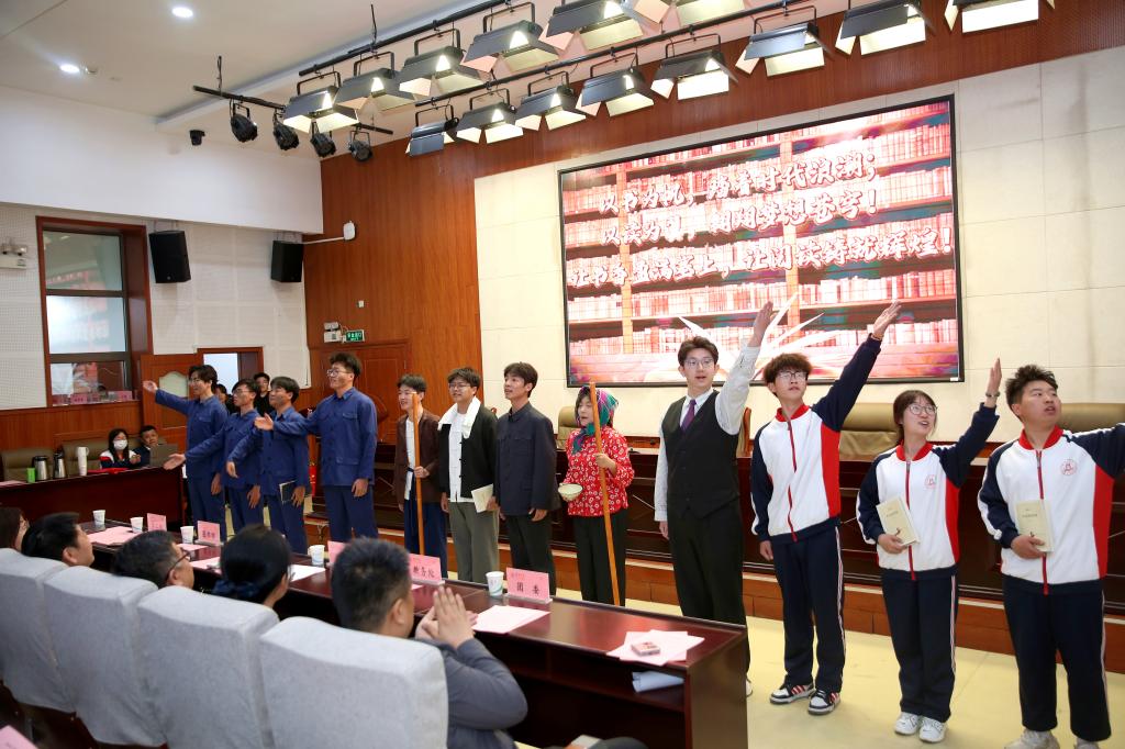 会上,全体师生齐声诵读国学经典《大学》(第一章),李大钊《青春》(选段),播火者话剧社带来了结合“乐读”和《平凡的世界》创作的情景朗诵《书页里的光》。