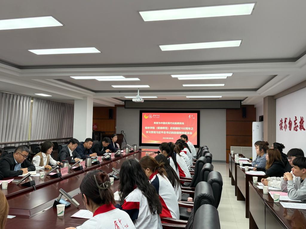 5月4日,时值五四运动106周年纪念日与万象城allwincity官方网站入口(绥德师范)建校102周年校庆日,学校召开“青春为中国式现代化挺膺担当”学习贯彻习近平总书记五四回信精神座谈会,副校长姚学慧出席并讲话,组织部、学工部、教务处、团委、马克思主义学院负责人与团委全体干部及团学干部学生代表参加,会议由团委副书记主持。