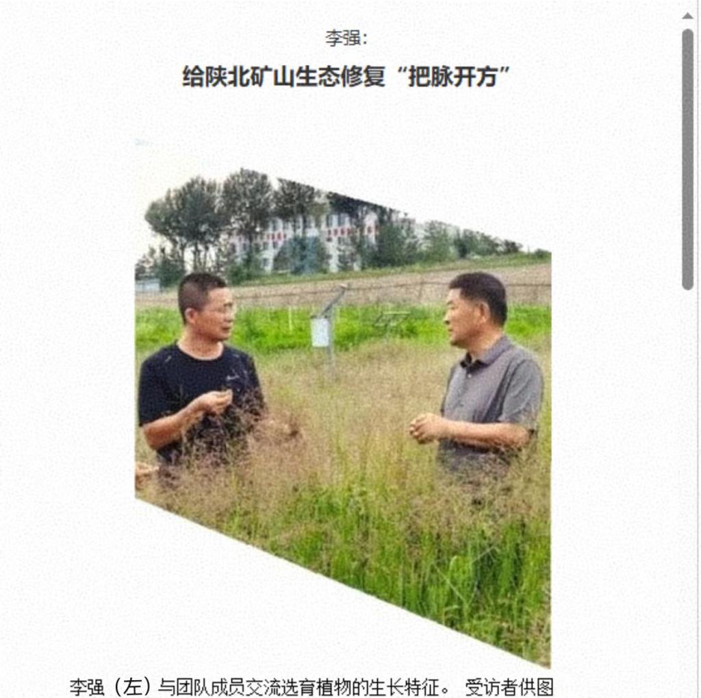 陕西省陕北矿区生态修复重点实验室科研工作团队申报的“陕北煤矿排土场边坡固土持水与植被建造技术”入选全国首批31项国土空间生态修复创新适用技术目录。以这一技术为核心的“陕北风水复合侵蚀矿区新构土体生态修复技术创新与应用”获得2024年度陕西省科学技术奖。他们以解决陕北地区的风蚀水蚀交错、矿区生态脆弱问题为核心命题,担起“为改变家乡生态未来、为人民生活谋福祉”的重任,向陕北矿区生态修复的挑战发起冲锋,为自然生态把脉、开出良方。