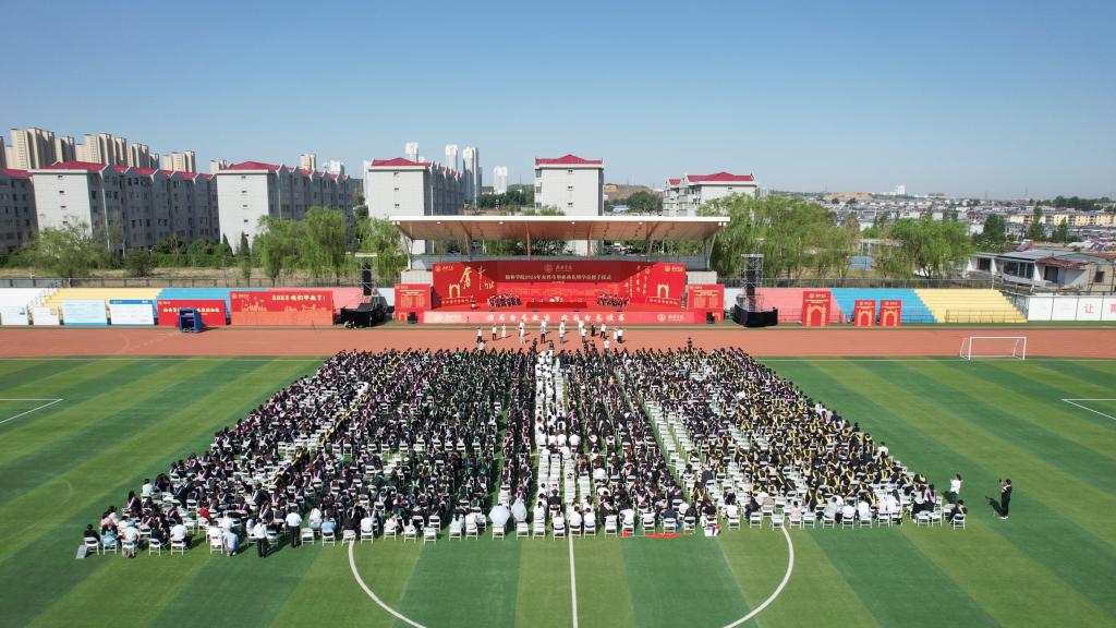 教育学院学前教育专业贺敏作为毕业生代表发言,她以校园白杨树为喻,深情回顾四年里在图书馆书页间“向下扎根”、在实践磨砺中“向上生长”的历程,讲述自己从青涩学生到省赛金奖获得者的蜕变,号召同窗“带着榆苑的根脉,挺立四方”,在乡村教育、科技前沿等领域成为“时代的白杨”。在校生代表、化学与化工学院2023级杨景远表示,将以学长学姐为榜样,传承“奋斗”精神,在青春赛道上接续奔跑,让奋斗成为青春最亮丽的底色。管理学院马芬芬教授作为教师代表在发言中勉励毕业生:“愿你们坚守初心,敢于拥抱未知,在终身学习中沉淀成长,以感恩之心回馈社会。”她回顾与学生在实验室、宿舍交流的点滴,鼓励大家带着“五乐育人”的养分,在更广阔的天地中绽放光芒。