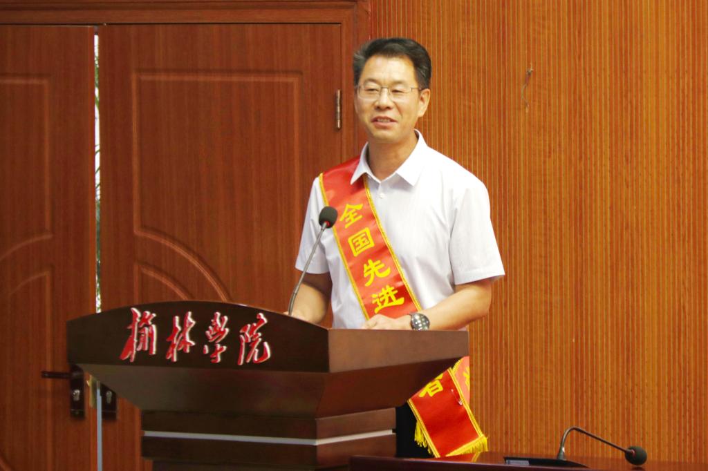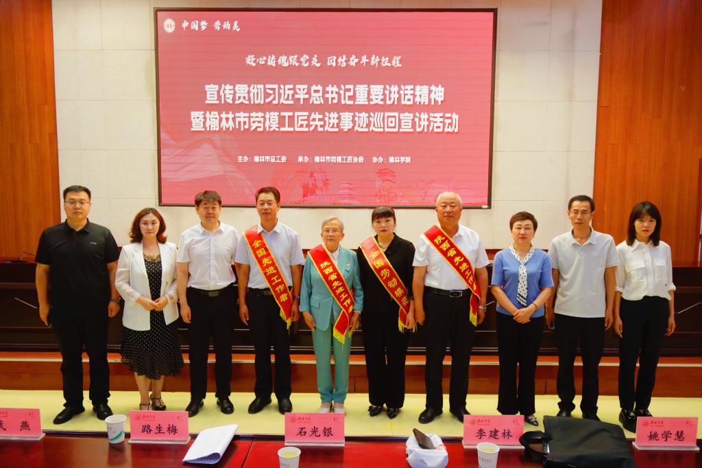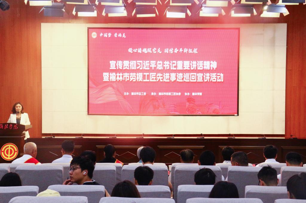 6月12日上午,由榆林市总工会主办,校工会、校团委协办的“中国梦·劳动美 凝心铸魂跟党走 团结奋斗新征程”宣传贯彻习近平总书记重要讲话精神暨榆林市劳模工匠先进事迹巡回宣讲活动走进万象城allwincity官方网站入口。副校长姚学慧、榆林市总工会党组副书记、常务副主席李建林,校工会、团委全体人员及各二级学院分会主席,青年教师代表、学生代表共同聆听宣讲。