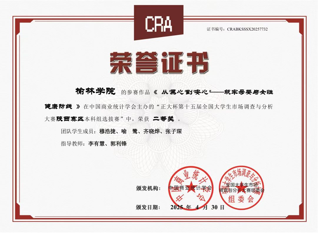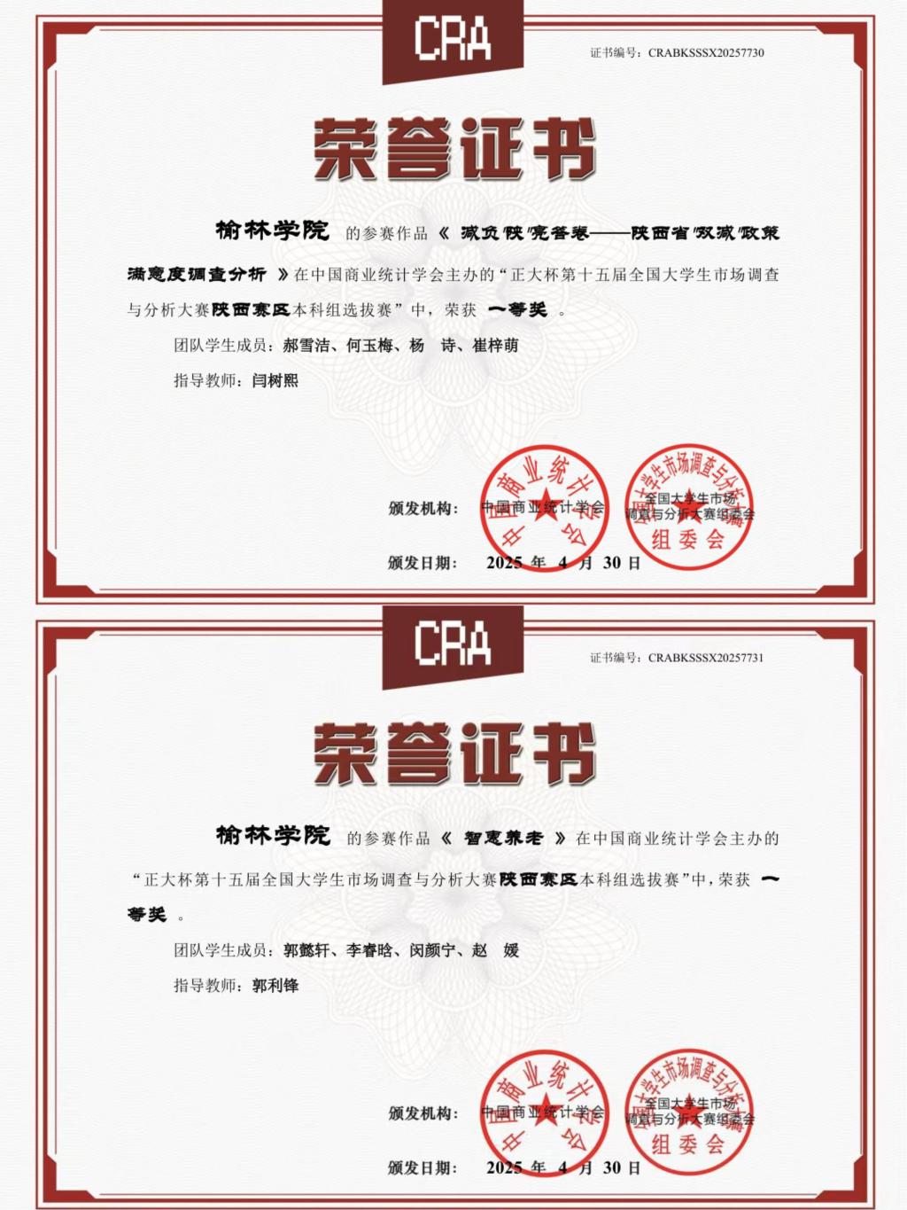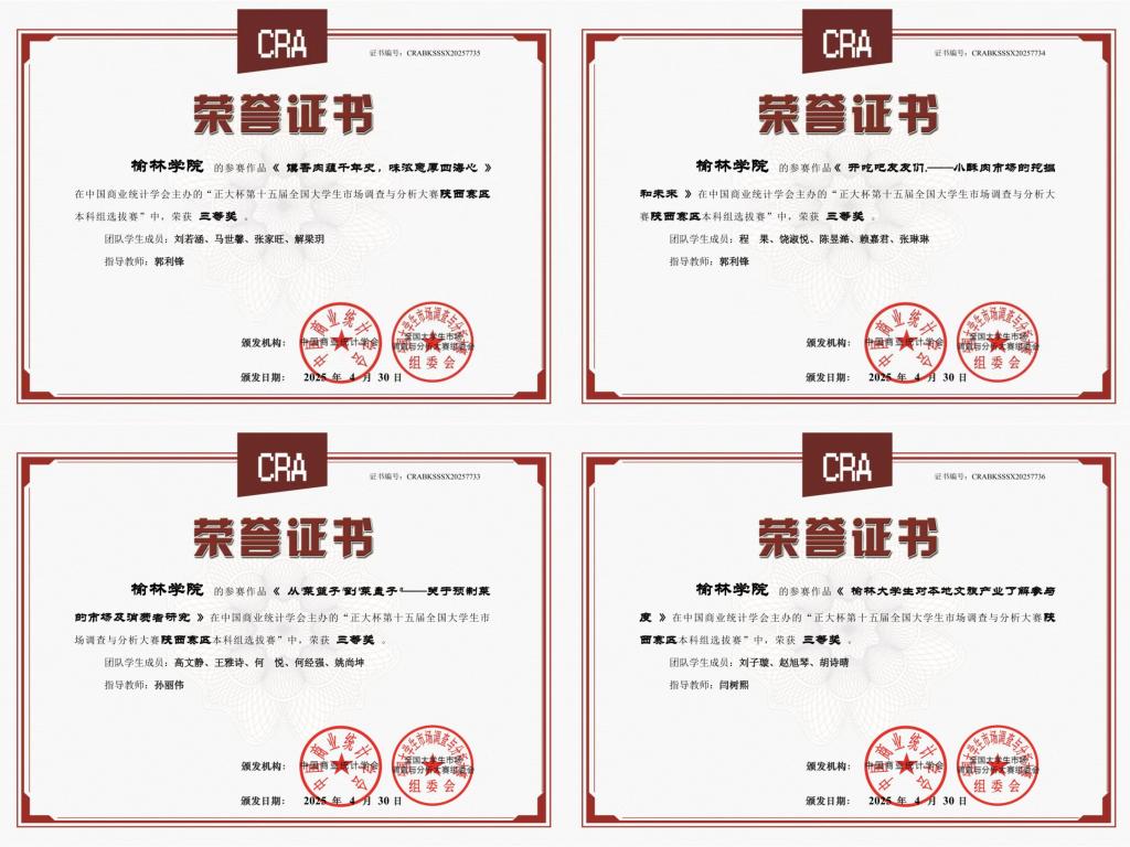 本届大赛陕西赛区吸引了全省41所高校的496支队伍参赛,数学与统计学院代表万象城选拔指导参赛的7支队伍,凭借扎实的统计专业功底和出色的调研分析能力全部获奖,其中,由闫树熙老师指导的《减负“陕”亮答卷——陕西省“双减”政策满意度调查分析》和郭利锋老师指导的《智惠养老》参赛作品荣获省赛一等奖,李有慧老师指导的参赛作品荣获省赛二等奖,另外4项参赛作品,获得省赛三等奖。