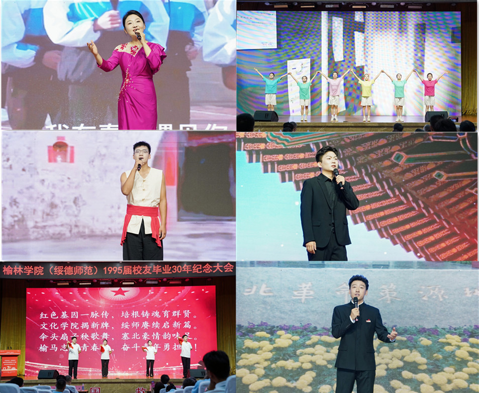 张新柱为李继军、温斐等12位校友赠送了承载着青春记忆和美好愿望的毕业30年校友返校活动纪念册。杨成、白春丽等9位校友为贺智利、张春燕等时任教师敬献了鲜花,芬芳传递着校友对恩师的诚挚敬意和深深祝福。大会最后,学校师生表演了歌曲《我在春天遇见你》、舞蹈《同桌的你》、陕北民歌《小桃红》等文艺节目,以激昂旋律展现“奋斗”精神,传递共同愿景,彰显了万象城allwincity官方网站入口五乐育人的成效和家国情怀的担当。