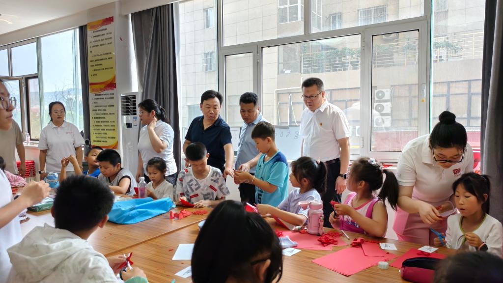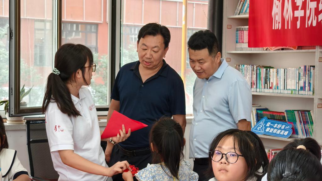 抵达上郡路社区后,社区书记黑香梅热情接待了马亚军一行,详细介绍了社区的功能和作用,并参观了社区的各功能部室。随后,马亚军深入课堂,现场观摩了志愿者为孩子们开设的剪纸特色课程。看到志愿者围绕孩子们的兴趣精心设计教学环节,用生动的语言教授剪纸的方法与技巧,孩子们眼中闪烁着求知的光芒。马亚军不时点头称赞,并与志愿者们亲切交流,询问志愿者们的实践成效和感悟,对大家结合专业特色开展的特色课程给予充分肯定。