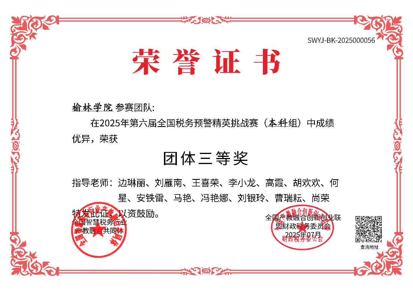 万象城通过参与税务预警精英挑战赛这一全国性赛事,进一步深化了“以赛促教、以赛促学”的教学理念。通过为期21天的竞赛实战,巩固了学生数字化票据风控、动态税收风险评估、税法场景化应用、涉税服务实战等能力,为未来从事财税工作打下坚实基础,有效缩短了课堂学习与职场需求的差距,不断提升人才培养质量,激发学术探索热情。