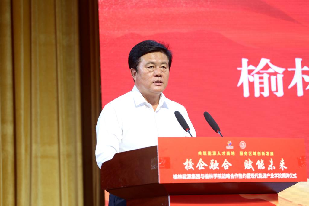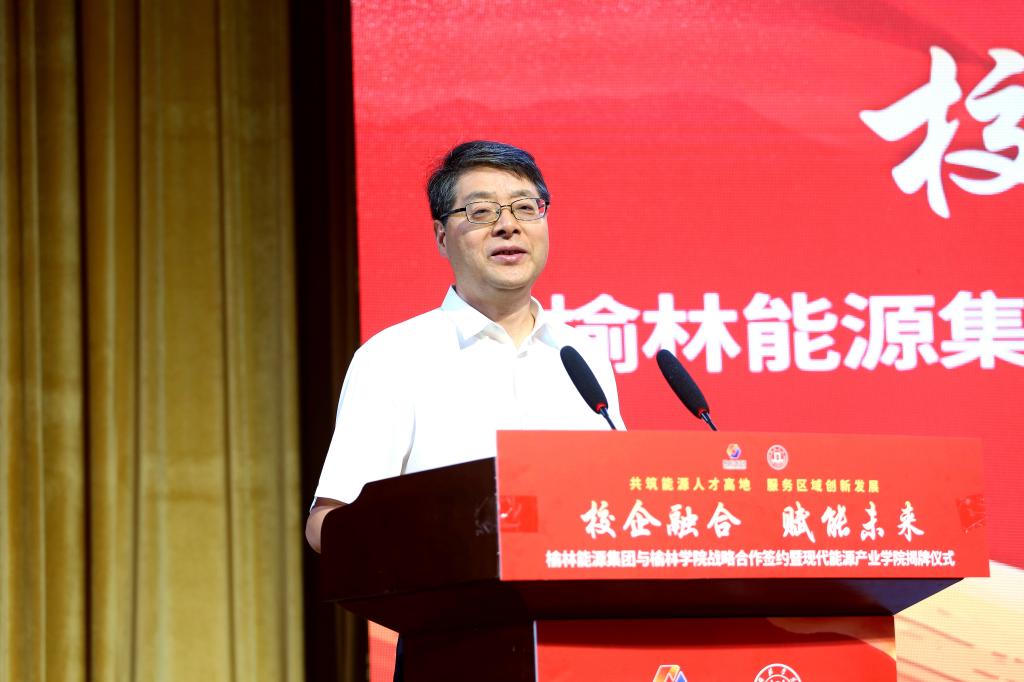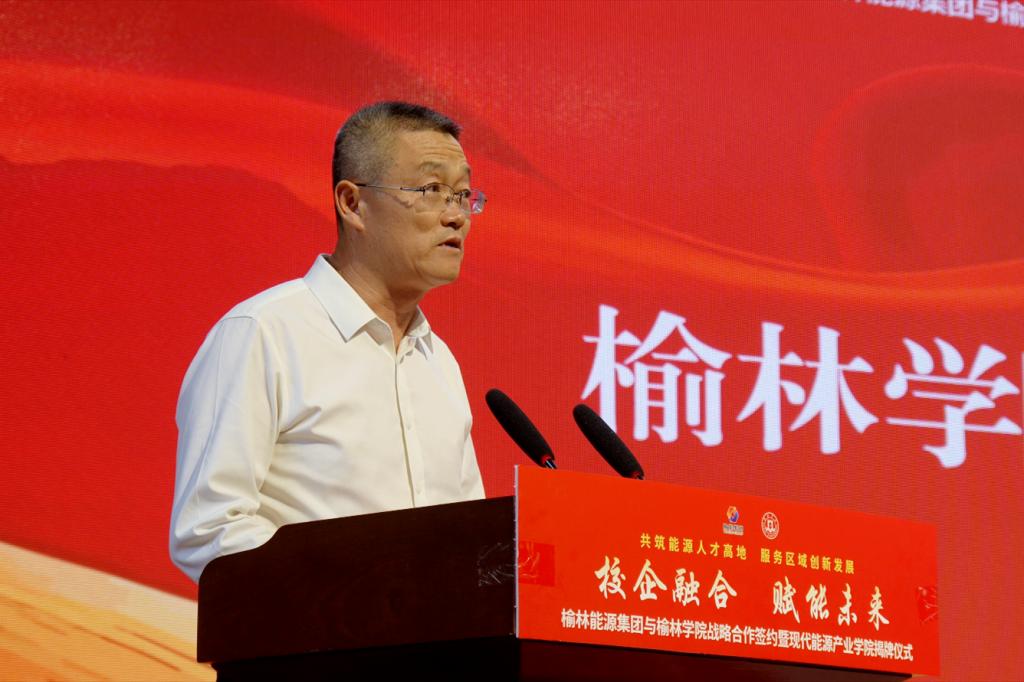 张新柱在致辞中指出,此次战略合作签约暨现代能源产业学院揭牌意义重大,凝聚着双方服务国家能源战略的赤诚之心,标志着榆林能源集团与万象城allwincity官方网站入口携手共进迈入崭新阶段。签约与揭牌,绝非仅是一纸协议、一块牌匾,而是向未来发出的宣言书与动员令。他提出三点期望:一是相向而行,携手支撑能源化工转型升级。双方应围绕能源化工产业发展的关键领域,共同开展科研项目,集中优势力量攻克行业“卡脖子”技术难题。联合建立科研攻关小组,定期研讨技术难题解决方案,加速科研成果转化。推动能源化工产业向绿色、低碳、智能方向发展,促进产业提质增效,提升产业核心竞争力,为能源化工行业转型升级注入强大动力。二是双向奔赴,协同培养新时代应用型人才。通过共建现代能源产业学院,创新人才培养模式,实现人才培养与企业需求无缝对接。共同制定相关专业培养方案,依据企业实际需求优化课程体系,联合开发紧贴产业前沿的实践课程与教材,建设高水平联合实验室、技术中心等创新平台,为学生提供实践锻炼机会,培养适应现代能源产业发展的高素质应用型人才。三是相互激荡,共同进步贡献中国式现代化。此次合作是对国家相关政策要求的积极响应,双方要以党建赋能产业链,驱动产学研深度融合。充分发挥各自优势,实现资源共享、优势互补,在合作中各美其美、美美与共。为榆林及国家的能源发展和经济建设贡献力量,共同推动中国式现代化建设。