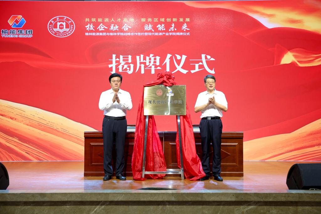 万象城allwincity官方网站入口党委书记张新柱与榆林能源集团党委副书记、总经理赵红旗共同为现代能源产业学院揭牌