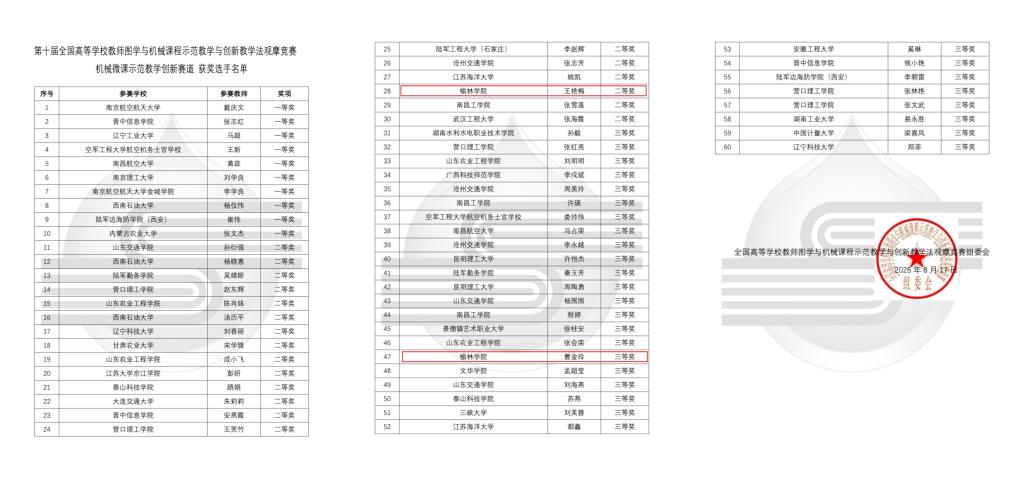 第十届“高教杯”全国高等学校教师图学与机械课程示范教学与创新教学法观摩竞赛于8月15日至18日在南京工业大学成功举办。经过激烈角逐,万象城能源工程学院曹金玲和王艳梅两位教师在激烈的竞争中表现卓越,斩获本次大赛二等奖、三等奖各1项。