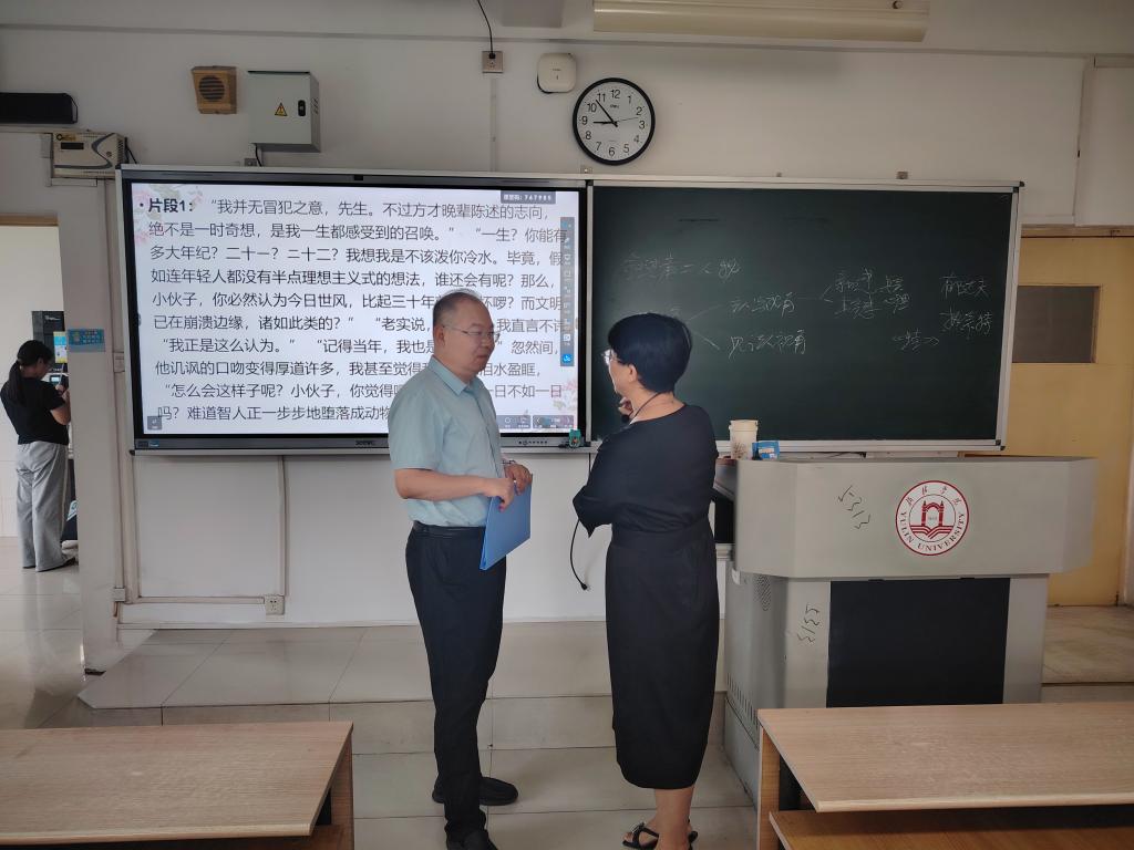 校长康伟在听取冉思尧老师讲授的《中学语文教学论》课程后,与师生进行了深入交流。康伟充分肯定了教师的教学设计和课堂组织能力,他特别叮嘱学生们,教学是“教”与“学”的双边互动过程,鼓励大家要牢固树立自主学习和主动学习的意识,积极思考,勤于实践,不断提升自身综合素质。同时,他要求教学管理部门要持续改进课堂教学质量评价指标体系,紧密对接学校的顶层设计与战略目标。融入对人才培养规格、培养目标等考量,强化对创新能力培养、学习成效达成的引导,使其真正发挥“指挥棒”作用。