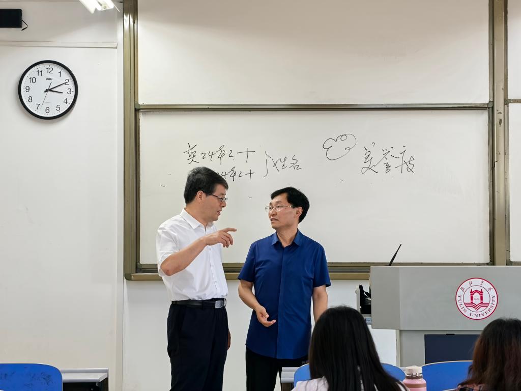 其他校领导也分别深入教学一线,党委副书记闫龙听取了张建华老师的《写作》等课程,党委副书记马亚军听取了毕伟伟老师的《植物产品加工与利用》等课程,副校长姚学慧听取了万鹏飞老师的《数学分析》等课程。各教学相关职能部门负责人分别听课,并在课后与师生就教学内容、方法改革等方面进行了交流探讨。