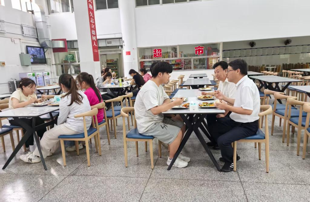 调研组走进餐厅,立刻感受到校区与本部实施上下一体化管理改革后的显著变化,整个空间焕然一新。从就餐桌椅的排布、窗口的功能设计,到菜品的丰富度与口味选择,均呈现出全新面貌。正值午餐时段,调研组成员与学生共同就餐。期间,张新柱与就餐学生亲切交流,细致询问大家对饭菜质量、口味、价格及就餐环境的意见。学生反馈,对当前饭菜的品质、价格及环境整体满意。张新柱强调,上下一体化管理改革的方向正确,后续需持续推进统一管理、落实严格标准。他特别指出,食品安全重于泰山,务必全力保障广大师生能吃上“放心餐”“满意餐”。