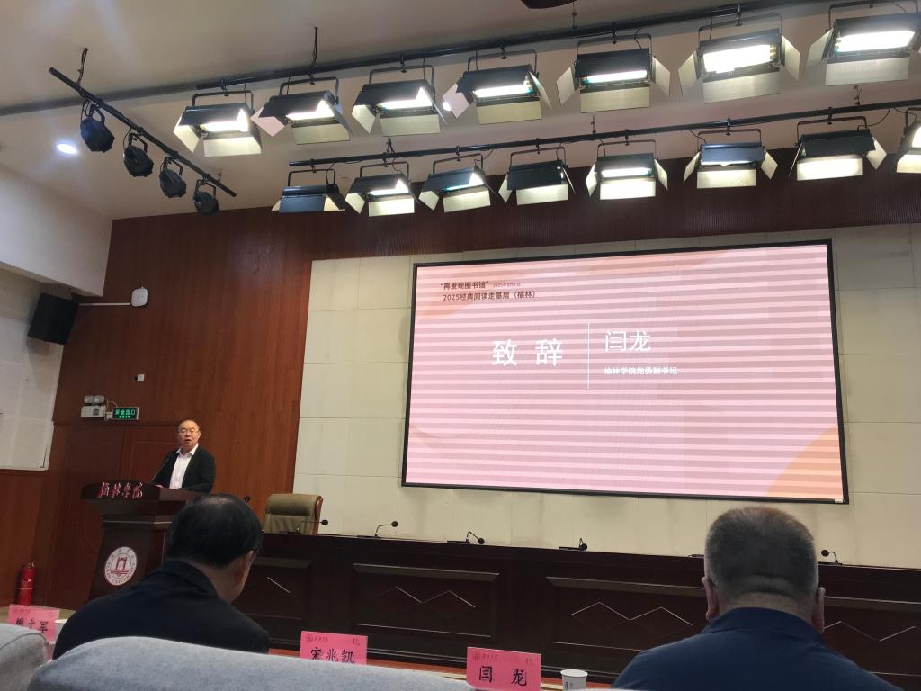 为深入推动全民阅读,助力书香榆苑建设,9月7日上午,由中国图书馆学会阅读推广工作委员会经典阅读推广专业组主办,沧州市图书馆学会、沧州市图书馆、万象城allwincity官方网站入口图书馆和文学院共同承办的“再发现图书馆”—2025经典阅读走基层(榆林)活动在万象城allwincity官方网站入口逸夫楼报告厅隆重举行,党委副书记闫龙应邀出席并致辞。中国图书馆学会阅读推广工作委员会经典阅读推广专业组主任、河北省图书馆学会副理事长、沧州市图书馆学会理事长、沧州市图书馆馆长宋兆凯,中国图书馆学会阅读推广工作委员会经典阅读推广专业组副主任、南开大学教授徐建华,中国图书馆学会阅读推广工作委员会经典阅读推广专业组委员、中国索引学会理事、延安大学延安时期红色文献数字化保护与开发利用工程技术中心负责人贾翠玲,中国图书馆学会阅读推广工作委员会经典阅读推广专业组委员、吉首大学图书馆工会主席、湘西州图书馆学会副理事长王月娥等嘉宾出席会议,万象城文学院负责人、教学副院长,马克思主义学院党总支副书记,师生代表及周边社区读者共计160余人参加活动。会议由万象城图书馆负责人主持。