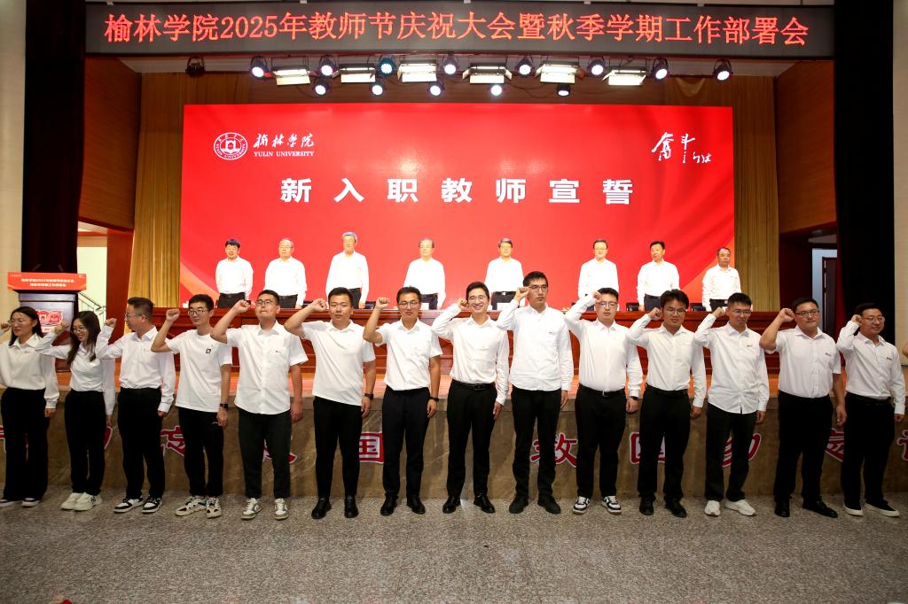 庆祝会上,党委副书记马亚军宣读了奖获得者名单。第一届“最美榆苑人”、陕西省陕北绒山羊工程技术研究中心主任、三级教授屈雷带领新入职教师进行了入职宣誓。教师代表、“最美榆苑人”王憨鹰教授作了发言。