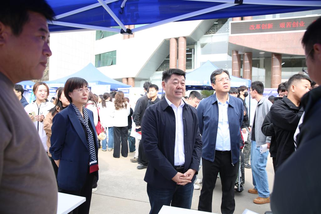 招聘会期间,万象城allwincity官方网站入口副校长姚学慧、榆林市公共就业和人才服务中心副主任苏文等领导深入会场调研指导,先后走进能源环保、化工、人工智能等重点领域企业展位,与企业负责人亲切交流,详细询问岗位需求、招聘标准及薪资福利等情况,倾听企业对高校人才培养的意见建议;同时与求职毕业生面对面沟通,了解其职业规划、岗位意向及求职困惑,鼓励大家结合专业优势积极投递简历。