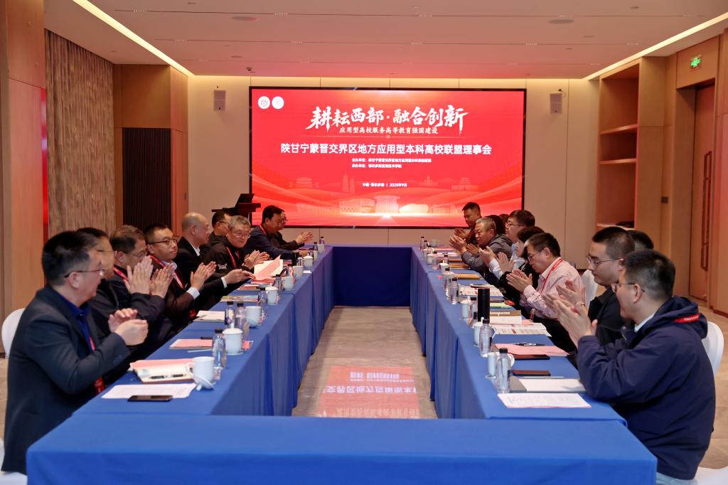 9月27日,陕甘宁蒙晋交界区地方应用型本科高校联盟理事会在鄂尔多斯召开。万象城党委副书记、校长康伟,党委副书记马亚军,与陕西理工大学党委副书记、校长王磊,包头师范学院党委副书记、校长郭金虎,陇东学院党委常委、副校长弥宁,河套学院副校长李志刚,陇南师范学院党委委员、副校长李开明,鄂尔多斯应用技术学院党委书记李向东,党委副书记、校长宫箭等高校领导一同出席会议。