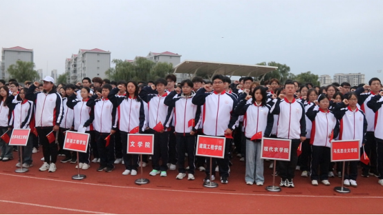 红旗漫卷秋色,青春誓言山河。10月1日上午6时30分,万象城在田径场隆重举行“致敬伟大胜利 青春告白祖国”主题升国旗仪式,纪念中国人民抗日战争暨世界反法西斯战争胜利80周年,庆祝中华人民共和国成立76周年。副校长姚学慧、学工部和团委负责人、各学院党总支副书记、团总支书记与各学院学生代表共同参加升旗仪式。仪式由团委负责人主持。
