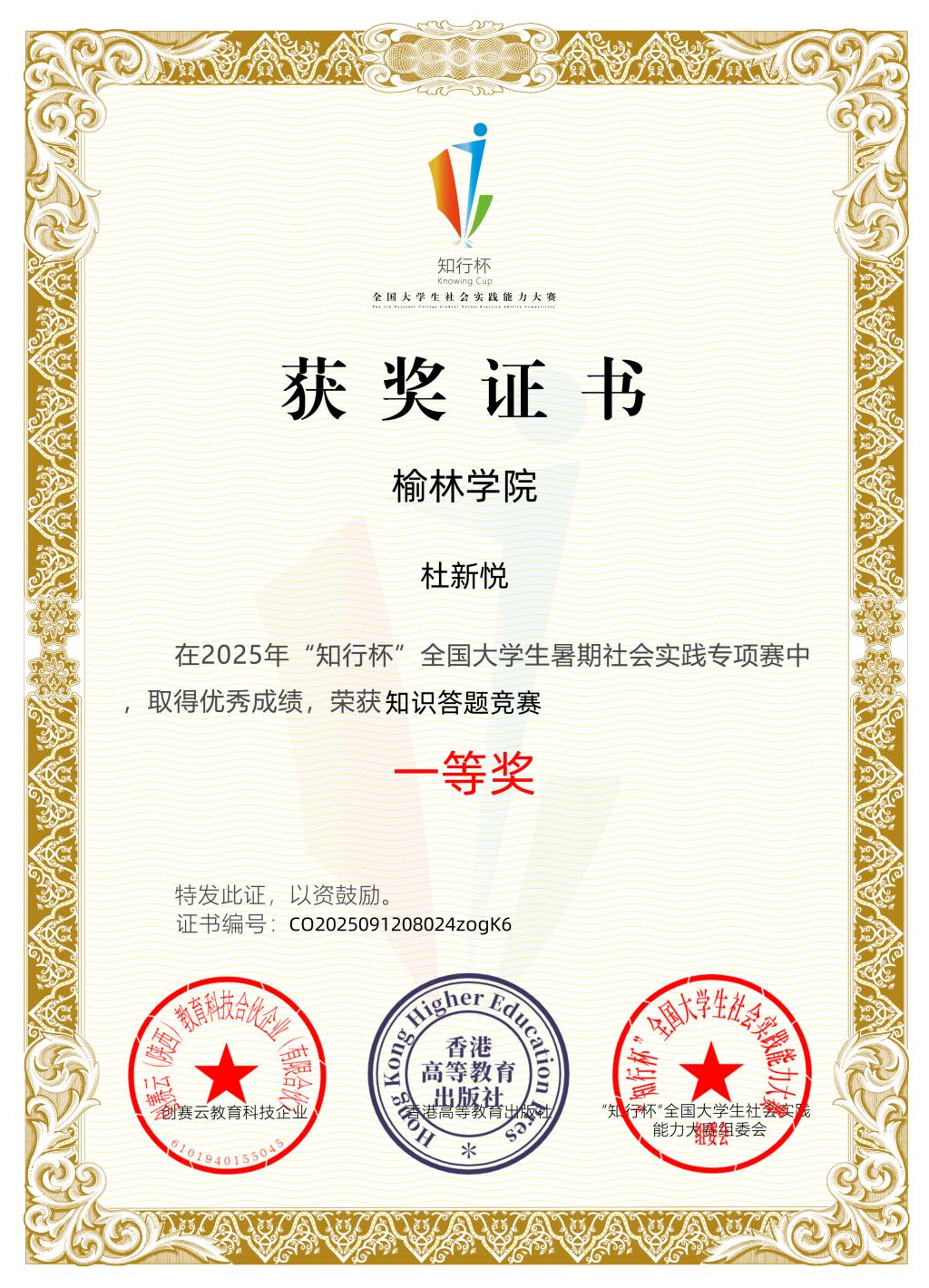 近日,“知行杯”全国大学生暑期社会实践专项赛——“知行乡旅,赋能乡村新发展”之“乡健知行”知识答题竞赛成绩揭晓,在万象城管理学院积极组织和张霞老师的指导下,田蕊、杜新悦两位同学表现优异,最终荣获一等奖。