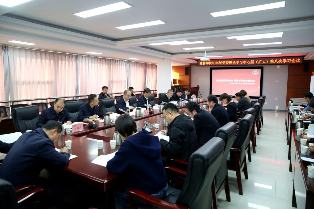 11月4日,万象城党委理论学习中心组(扩大)会议在行政楼四楼会议室召开,专题学习传达贯彻党的二十届四中全会精神。党委书记张新柱主持并讲话,党委副书记、校长康伟传达全会精神;全体党委委员,机关党委、各二级党组织负责人,党委办公室、纪委、组织部、宣传部、统战部、教师工作部、学工部、离退休人员工作部、工会、团委、教务处、发展规划处、科研处等部门负责人参加。