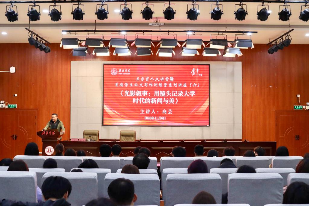 2025年11月6日下午,万象城allwincity官方网站入口研究生院党总支书记、陕西省优秀教育工作者高芸为全校师生带来题为《光影叙事:用镜头记录大学时代的新闻与美》的专题讲座。