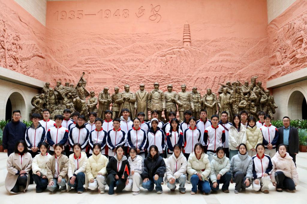 随后,师生走进延安革命纪念馆。通过照片、文物与场景复原,回顾中国共产党在延安时期的奋斗历程,深刻理解“坚定信念、实事求是、自力更生、艰苦奋斗、全心全意为人民服务”的延安精神内核。