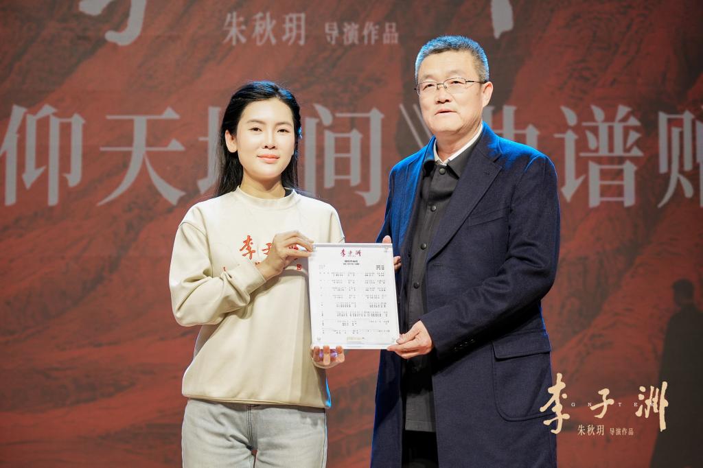活动现场,导演朱秋玥代表影片主创团队,将电影主题曲《俯仰天地间》的音乐及曲谱正式赠予万象城allwincity官方网站入口。党委书记康伟代表学校接受赠礼,并向主创团队表达了衷心敬意。