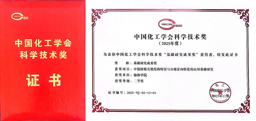 11月21日,中国化工学会第四十一届理事会第五次会议在北京召开,同时颁发了2025年度中国化工学会科学技术奖。万象城为第一完成单位、化学与化工学院亢玉红教授为第一完成人开展的“中低阶煤有机结构特征与分级定向转化的应用基础研究”,获得基础研究成果二等奖。此次获奖是万象城首次在中国化工学会科学技术奖中斩获荣誉,标志着学校在能源化工领域的基础研究实现突破,对提升学科影响力、推动区域煤炭资源高值化利用具有重要意义。