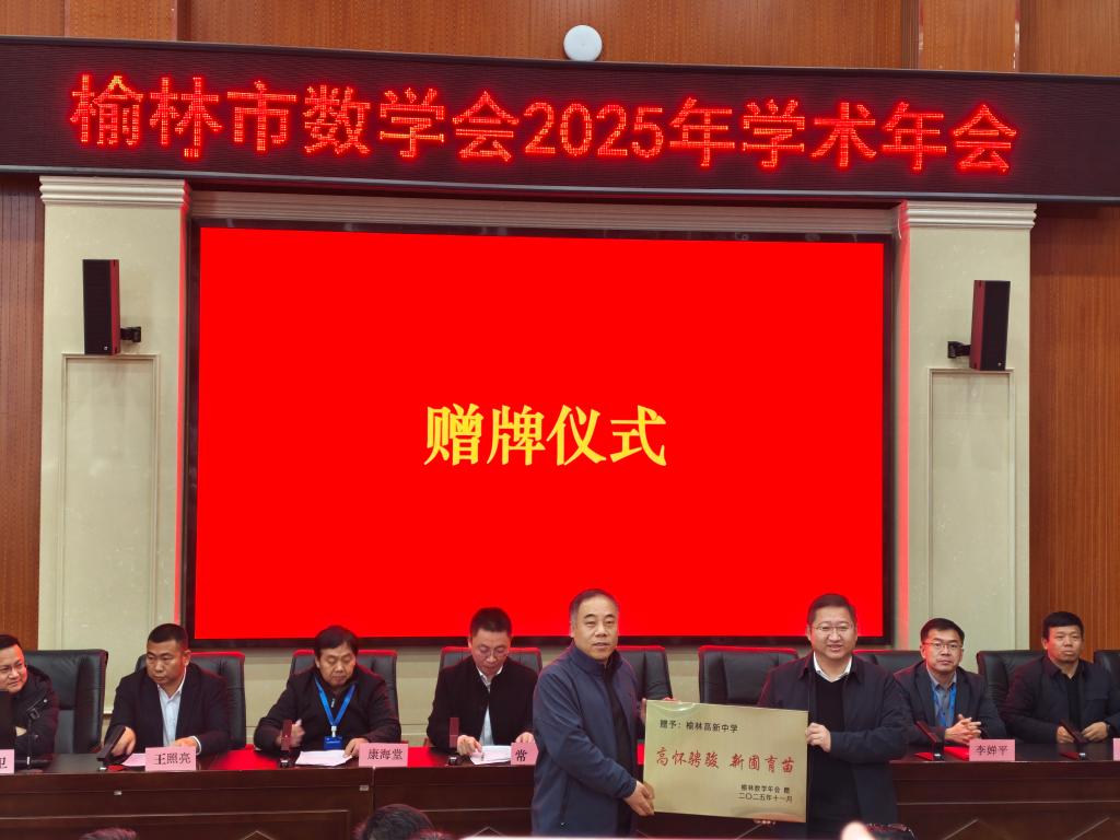 年会主题鲜明、内容丰富、组织严密、成果丰硕,是一次有高度、有深度、有温度的学术盛会,完成所有既定议程,年会顺利闭幕。榆林市数学会副理事长、榆林中学副校长常伟致闭幕词,学会理事长为本届年会的承办方榆林高新中学赠牌感谢,会议确定2026年榆林市数学会学术年会由神木市第四中学承办,两所学校完成会旗交接仪式。