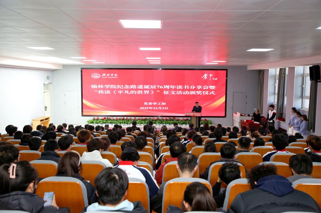 姚学慧在讲话中指出,路遥先生扎根陕北黄土地,用生命书写平凡中的伟大,其作品跨越时空,温暖了几代读者的心灵。学校持续深化“五乐育人”工程,将《平凡的世界》作为“奋斗之书”赠送给新生,四年累计赠送13200本,并通过“走进公寓问需求”等主题活动,让经典阅读融入师生日常。他向师生提出三点希望:一是以乐读滋养心灵,坚持阅读经典,在书香浸润中感悟路遥精神,树立正确的世界观、人生观、价值观,锚定人生精神坐标;二是以实干锤炼本领,以路遥精神为指引,脚踏实地、勤奋学习,在实践磨砺中增长才干,用奋斗书写青春答卷;三是以担当回应时代,传承学校奋斗基因,将个人理想融入地方发展,在陕北大地上勇担使命、成就不凡。