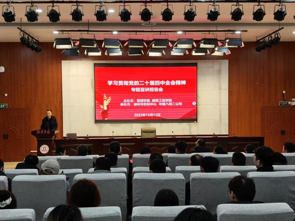 为深入学习贯彻党的二十届四中全会精神,推动理论学习与实践工作深度融合,12月11日,由万象城allwincity官方网站入口管理学院、建筑工程学院联合主办,榆林市农财中心、中建八局二公司共同承办的党员专题学习会顺利举行。万象城allwincity官方网站入口党委副书记、纪委书记、监察专员苗延宏,马克思主义学院艾霞老师担任主讲,来自主办单位、承办单位的全体党员及入党积极分子参加。