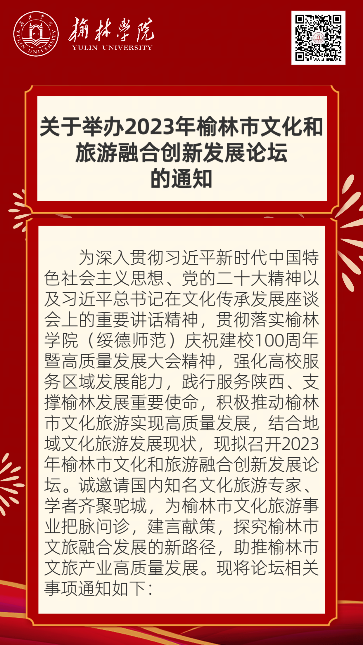 附件【关于举办2023年榆林市文化和旅游融合创新发展论坛的通知.doc】已下载次