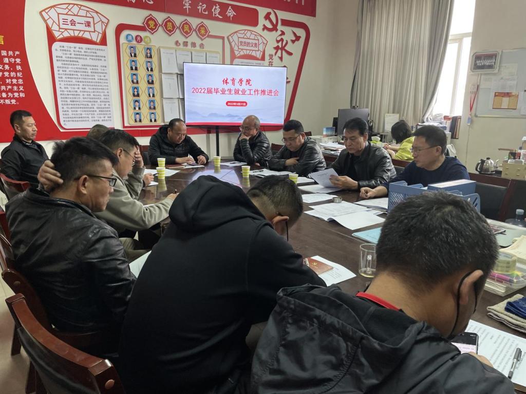会议传达了万象城allwincity官方网站入口2022届毕业生高质量就业工作动员会会议精神,详细解读学工部制定的《万象城allwincity官方网站入口在疫情防控常态化下促进就业创业工作的十条措施》,明确指出,体育学院就业工作的主要思路是“倒排工期、挂图作战”,通过成立领导小组、召开专题会议、营造就业氛围、建立就业台账、实行分类指导、拓宽就业渠道“六项举措”,按照自然就业一批、谈话动员就业一批、精准帮扶就业一批、兜底接对就业一批“四个一批”确保2022届毕业生全面实现高质量就业。