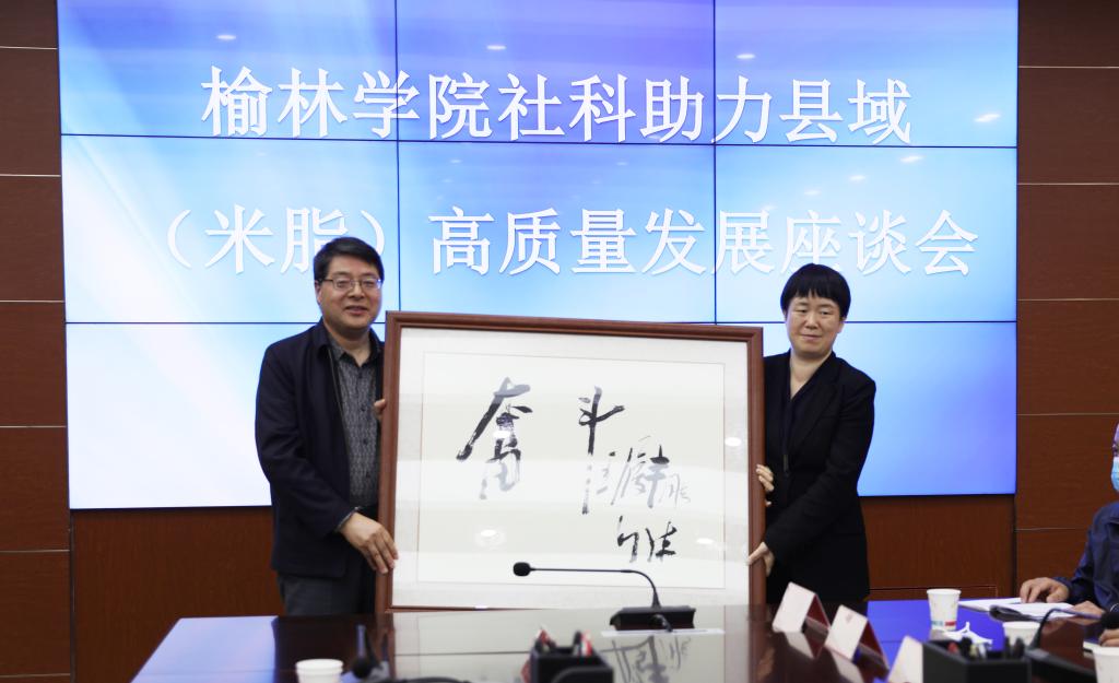 会议由米脂县委常委、宣传部部长高峰主持。王曼华对张新柱一行表示了热烈欢迎,对张新柱书记带队进行社科助力县域(米脂)高质量发展表示感谢。她表示,2021年9月13日,习近平总书记来米脂高西沟、杨家沟后,米脂深入贯彻落实总书记重要讲话精神和指示批示,提出了“赓续红色血脉 全域推进黄河生态治理”的两个方向和主要任务,希望通过十四五期间的努力,把总书记走过的三个村建成全国乡村振兴楷模村,米脂将加强红色资源充分利用和开发,全域生态治理,提出165项主要任务。米脂一直期望能找到与万象城allwincity官方网站入口合作的契合点,在红色党员教育基地建设、红色课程开发,青少年研学红色教育基地、生态教育基地建设,高西沟精神宣讲、总结和提炼,高西沟经验的推广,米脂小米的育、繁、推工作,旅游宣传和策划等方面进行全方位合作。