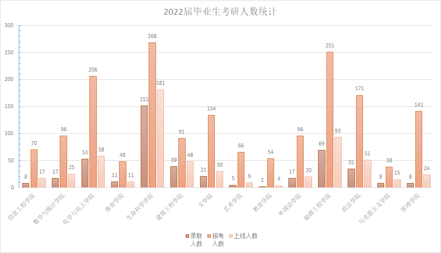 学校以先进典型为标杆,引领学生学习潮流,组织学习经验交流会,请考研成绩优异的毕业生为低年级学生传授学习经验,通过先进典型的引领示范,学校考研人数、考研率屡创新高。万象城数学与统计学院、生命科学学院和马克思主义学院的硕士研究生报考率均超过了70%,生命科学学院的考研上线率达到了55%,录取率达到了45%,近三年,全校硕士研究生报考率约49%,上线率在约16%,录取率约12%,与同类院校相比名列前茅。