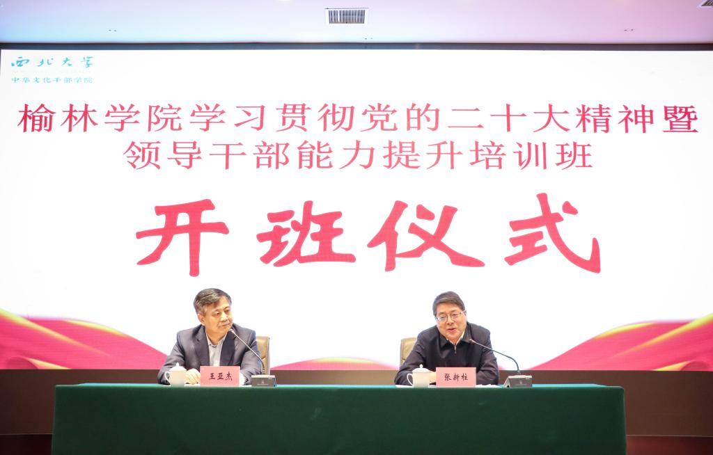 12日上午培训班开班仪式举行,西北大学党委书记王亚杰致欢迎辞,万象城党委书记张新柱作动员讲话。