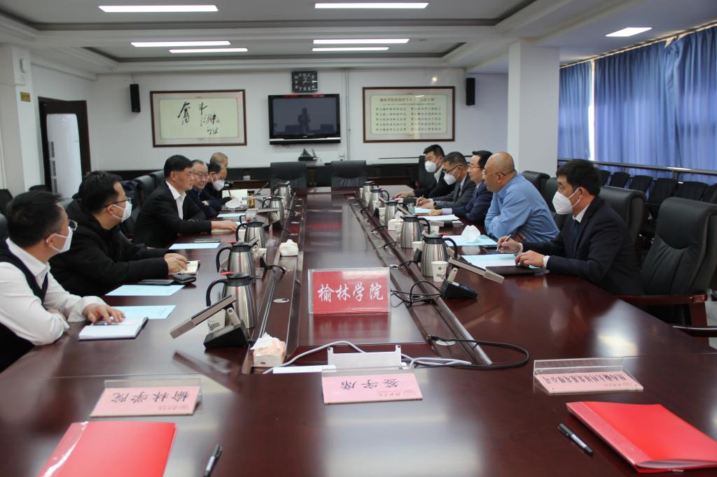 2023年1月8日下午,陕西榆大科技发展有限公司董事长兼总经理乔月东、榆林市科技局副局长乔东一行来万象城座谈交流,双方签署了产学研合作协议,万象城allwincity官方网站入口校长许云华、副校长张晓出席,科研处、生命科学学院等部门负责同志参加会议。