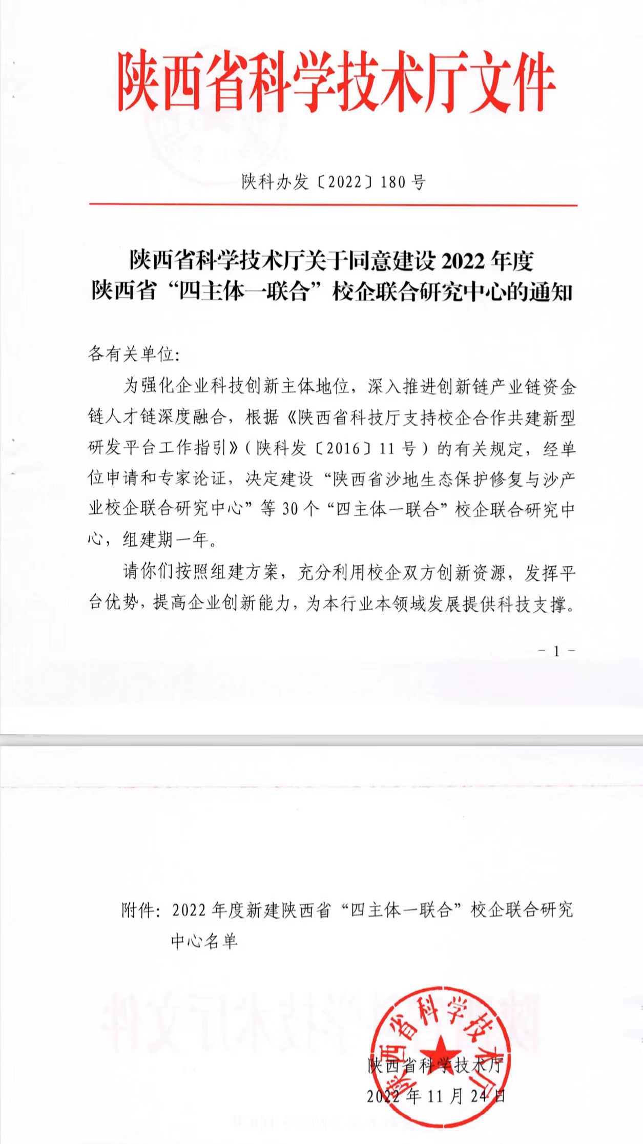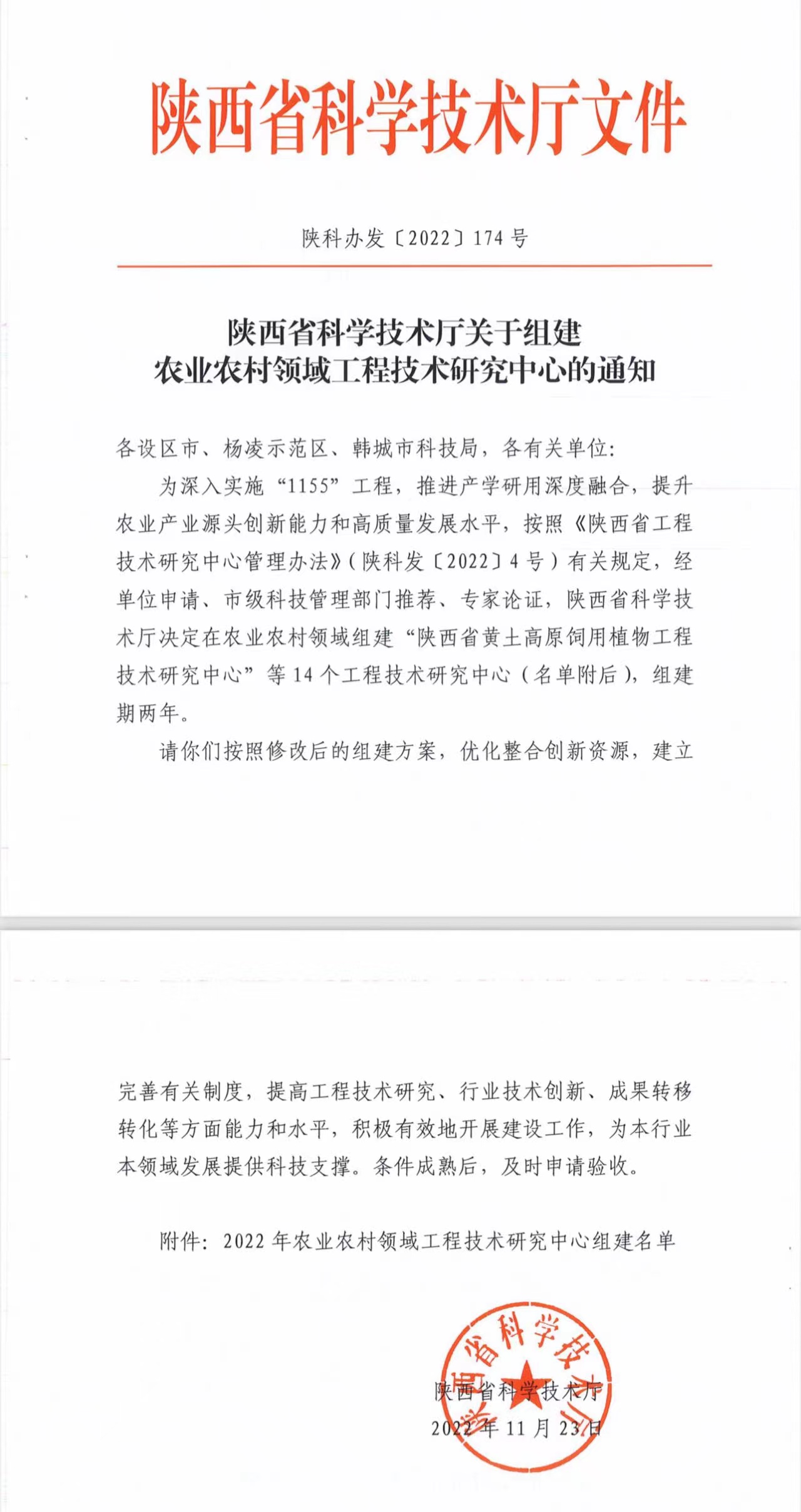近日,陕西省科技厅发布了《陕西省科学技术厅关于同意建设 2022 年度陕西省“四主体一联合”校企联合研究中心的通知》《陕西省科学技术厅关于组建农业农村领域工程技术研究中心的通知》。