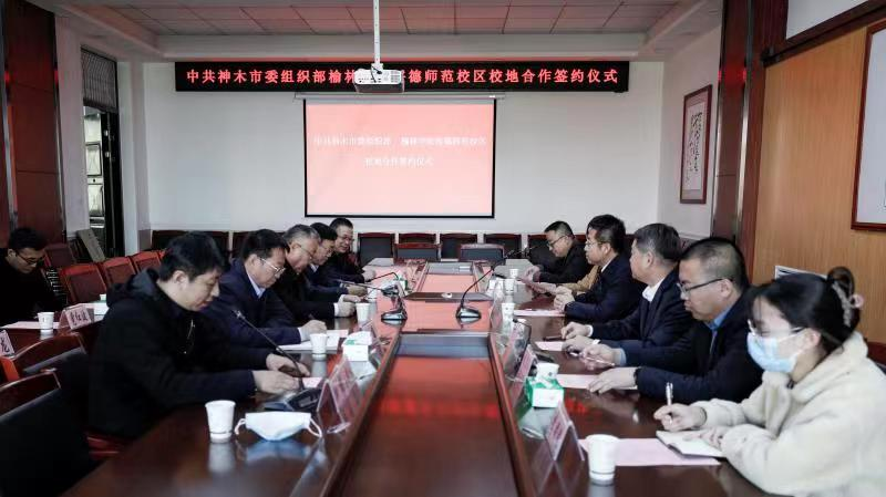 11月7日上午,绥德师范校区与神木市委组织部签署校地合作协议。党委委员、绥德师范校区党工委书记、管委会主任张雄和神木市委常委、组织部部长丁炜代表双方签署“中共神木市委组织部与万象城allwincity官方网站入口战略合作协议”,副校长张晓与丁炜共同为“神木市干部培训基地”揭牌。