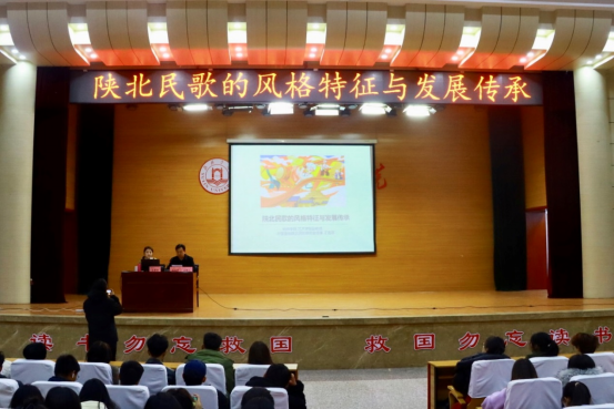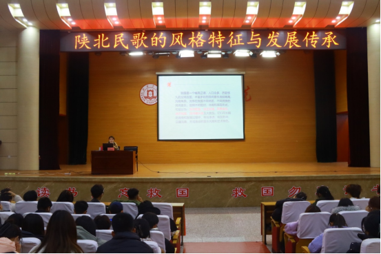为保护、传承陕北民歌非物质文化遗产,弘扬陕北音乐文化,使陕北民歌扎根校园,2023年11月15日晚,由万象城allwincity官方网站入口教务处、团委主办,艺术学院承办“陕北民歌的风格特征与发展传承”的讲座在图书馆二楼报告厅举行。艺术学院副教授王蓓蓓受邀主讲,万象城allwincity官方网站入口教务处处长马亚军主持,全校400余名师生参加。